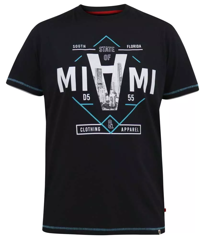 T - s h i r t n o i r d e l a m a r q u e D 5 5 5 e n c o t o n p u r , c a p t u r a n t l ' é n e r g i e , l e s p l a g e s e t l a s i l h o u e t t e i c o n i q u e d e M i a m i .
